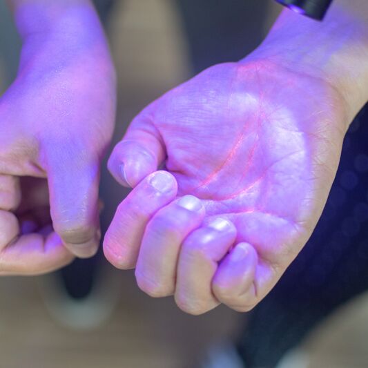 Einmal jährlich findet in unserer Klinik ein Aktionstag der Hygiene mit unterschiedlichen Themen statt, z.B. Überprüfung der Händedesinfektion mittels einer sogenannten Black Box. Damit können nicht nur unsere Mitarbeiter, sondern auch Sie als Patienten, Besucher oder Angehörige die korrekte Durchführung überprüfen.